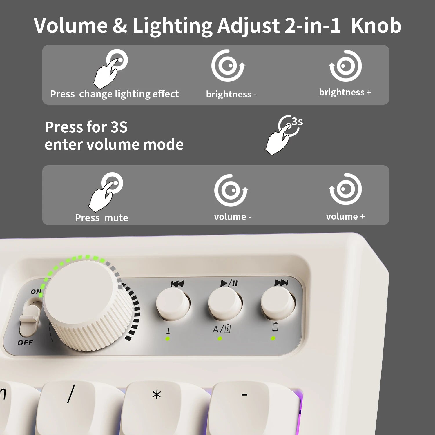EWEADN V97 Cute Creamy Keyboard, Bluetooth/2.4GHz Gaming Keyboard Wireless with RGB Backlit, Rechargeable, Quiet, for PC Gamer